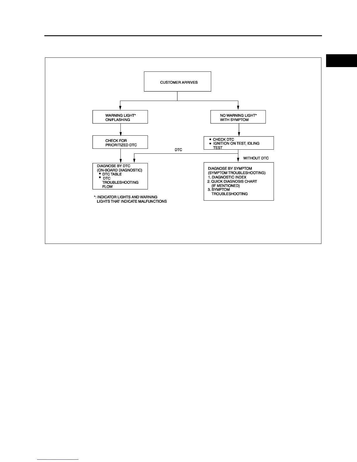• The quick diagnosis chart lists diagnosis and inspection procedures to be performed specifically relating to the