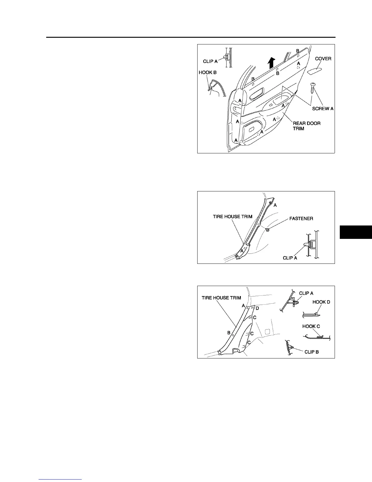 7. Pull the rear door trim upward, then disengage