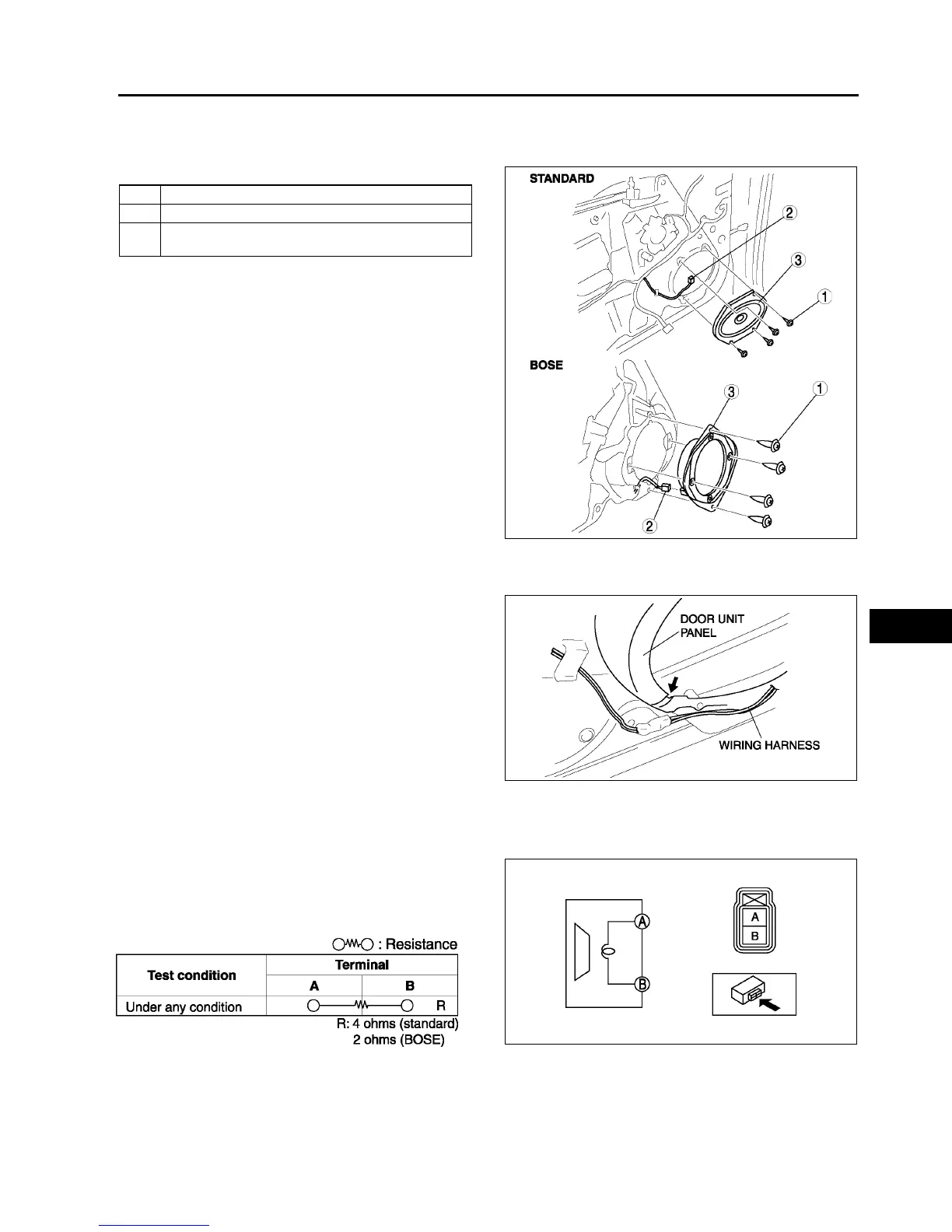 2. To verify that the front door speaker outputs sound, apply voltage to the front door speaker and release using a