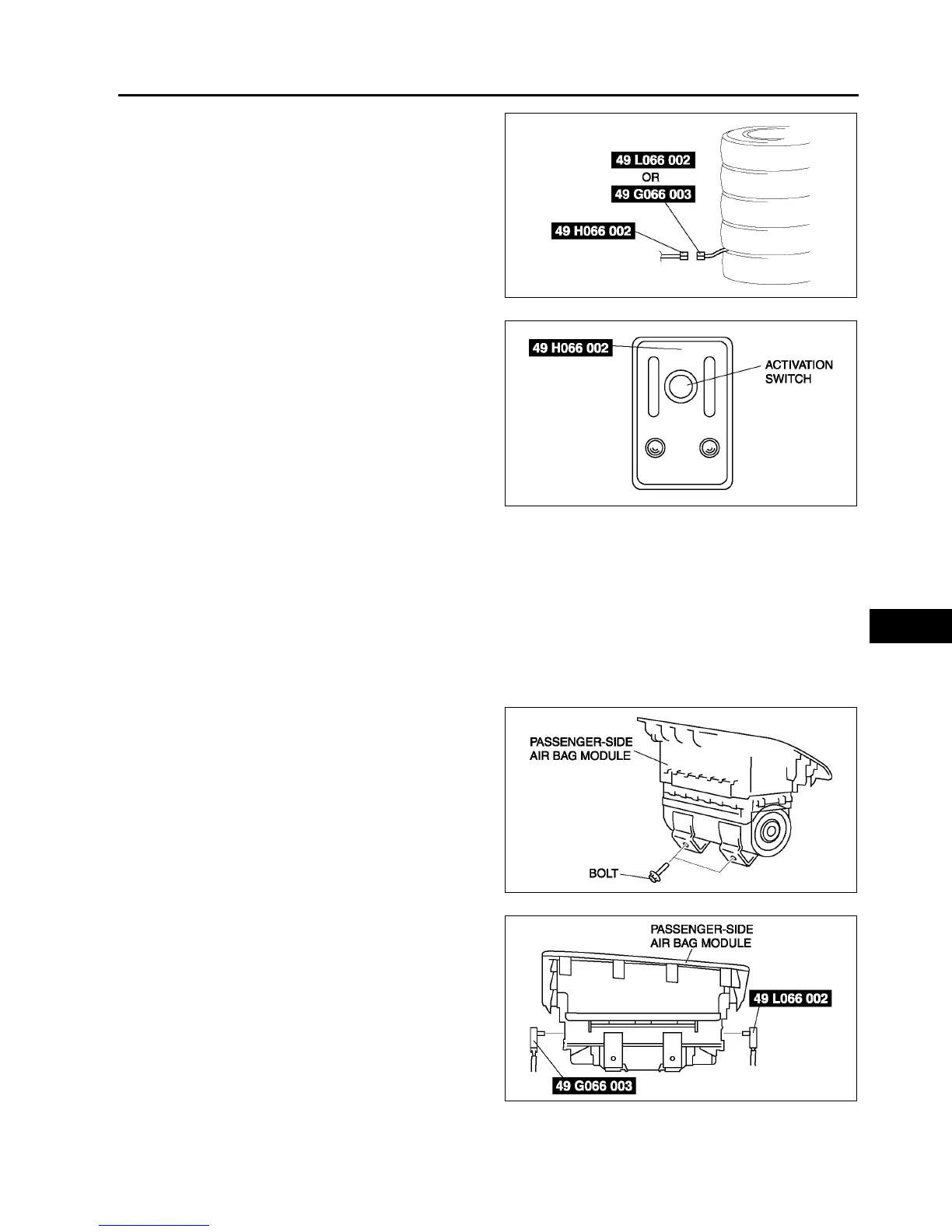 • Passenger-side air bag module is the dual inflator type. When the inflators are forced to be