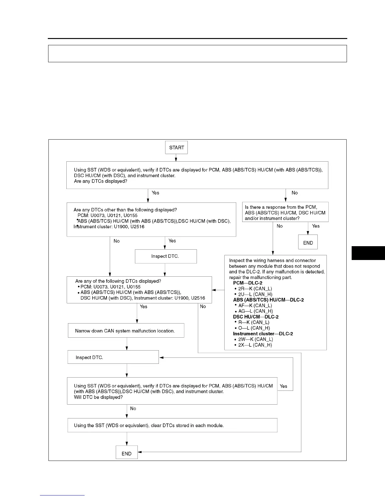 • In case the controller area network (CAN) system is malfunctioning, read the DTCs of the following modules,