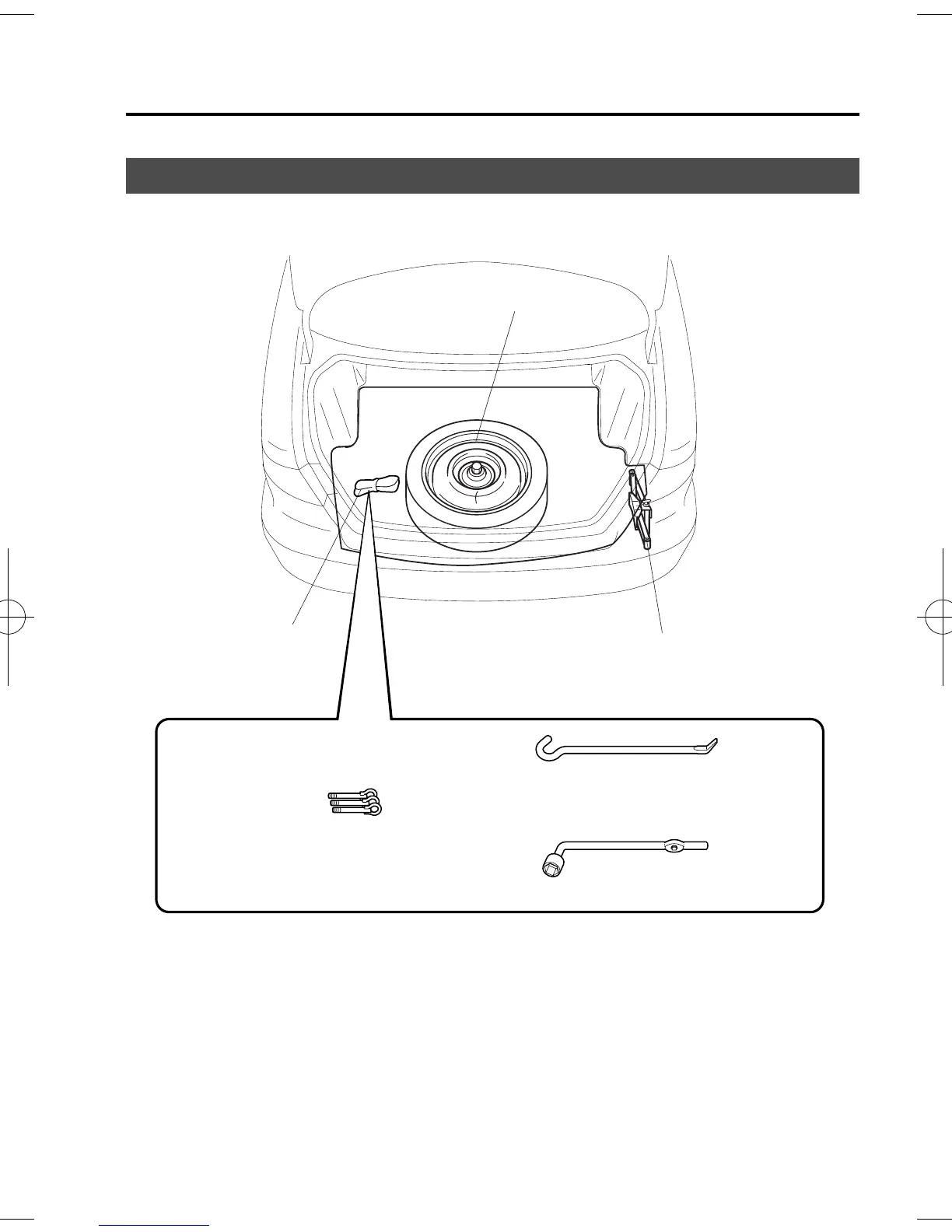 Spare tire and tools are stored in the locations illustrated in the diagram.