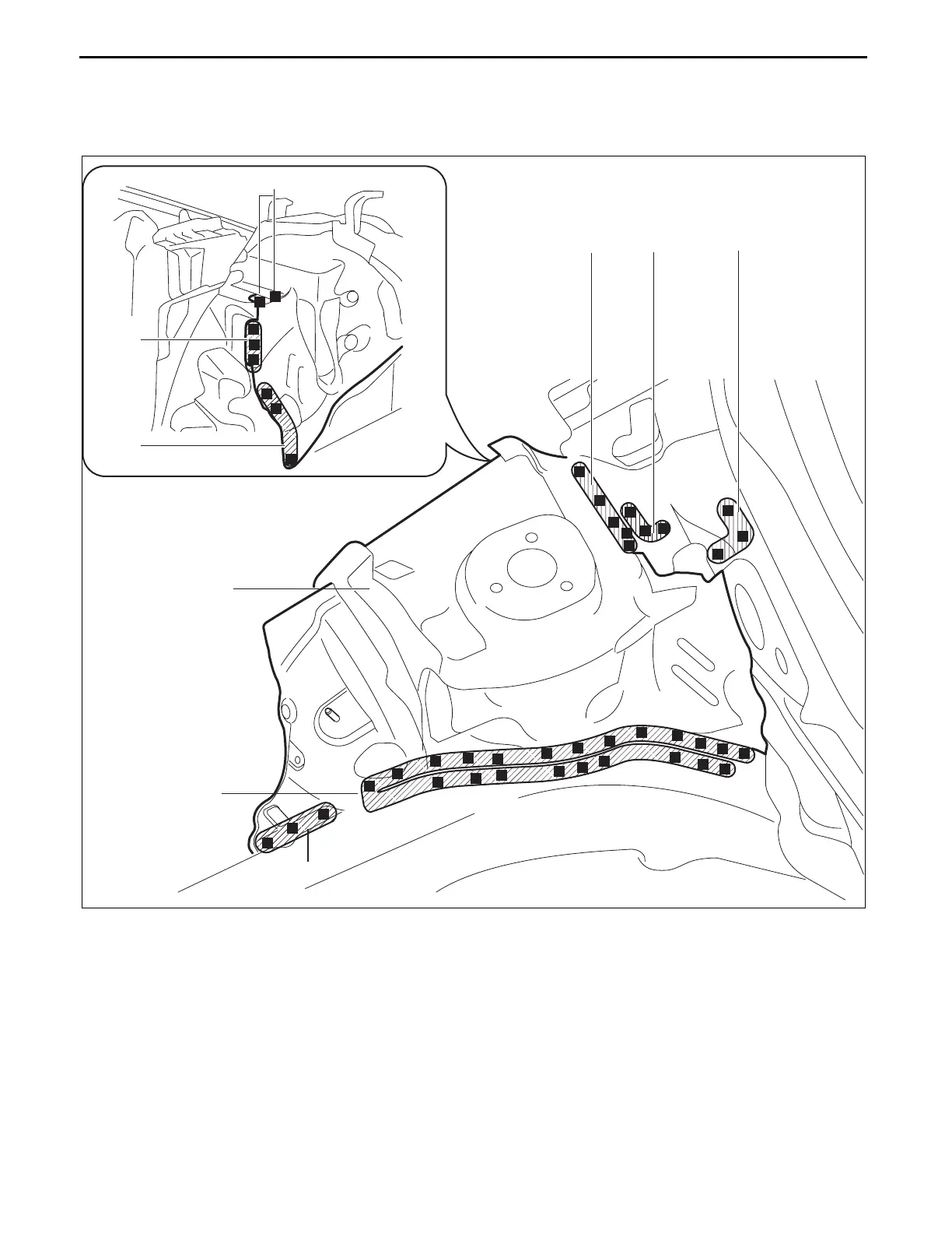 x Plug weld the 8 locations indicated by (B) from the front wheel housing.