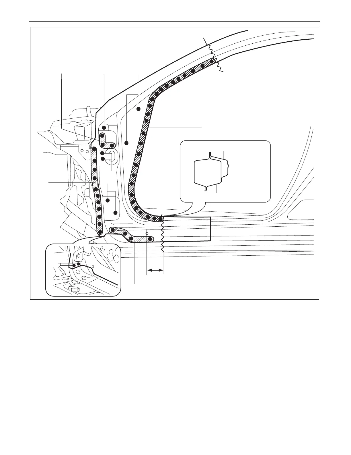 x During rough cutting, be careful not to damage the side sill reinforcement.