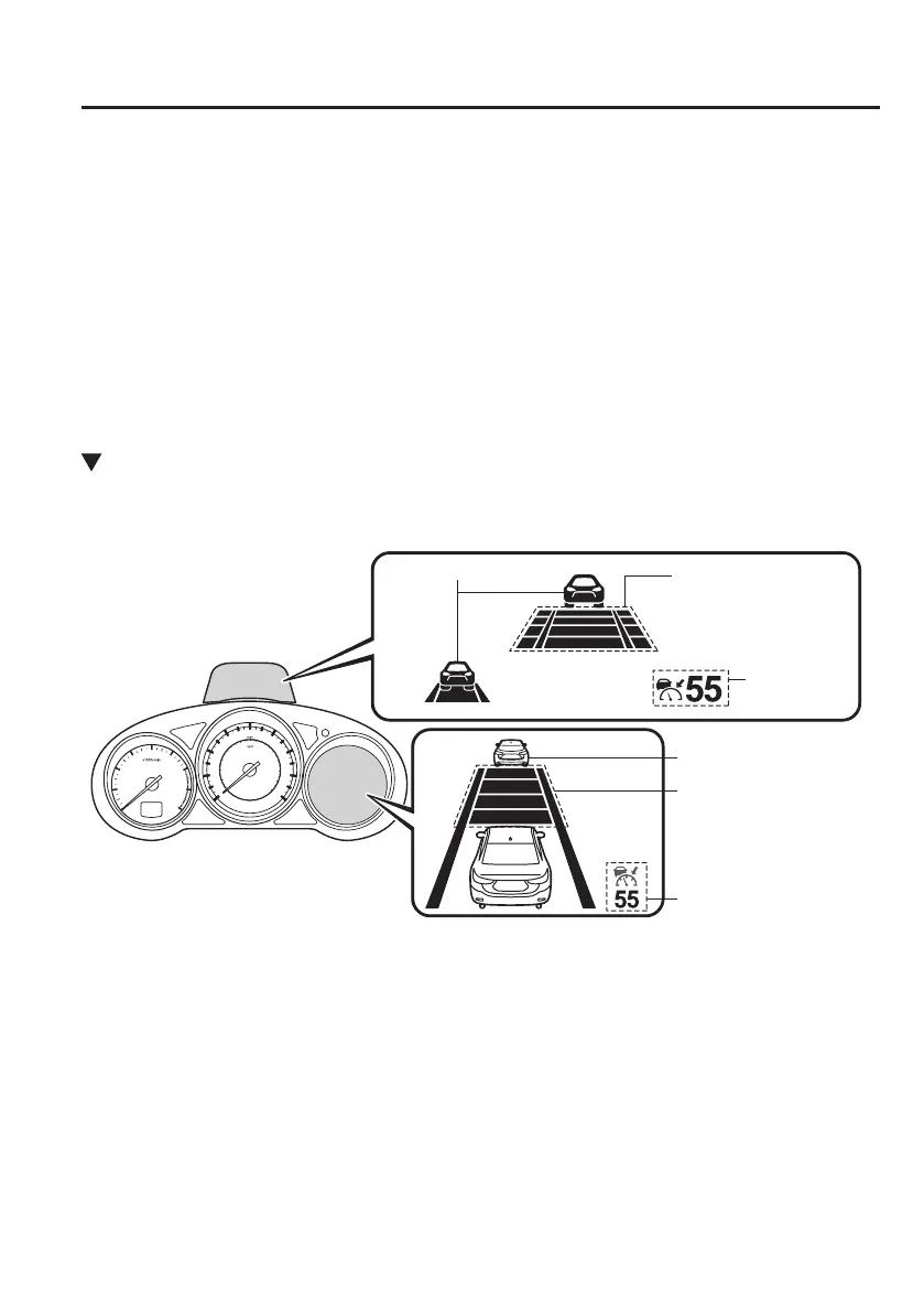 The setting status and operation conditions of the Mazda Radar Cruise Control (MRCC)