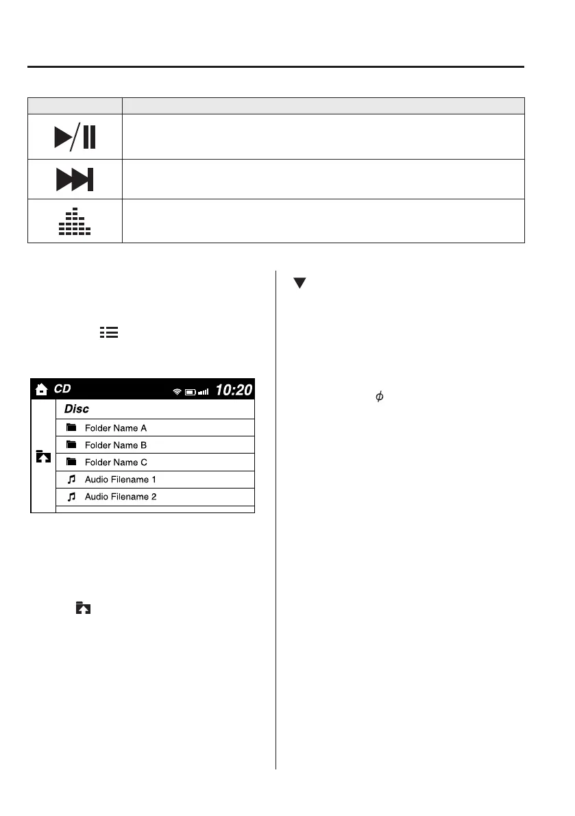 Plays a CD. When selected again, playback is temporarily stopped.