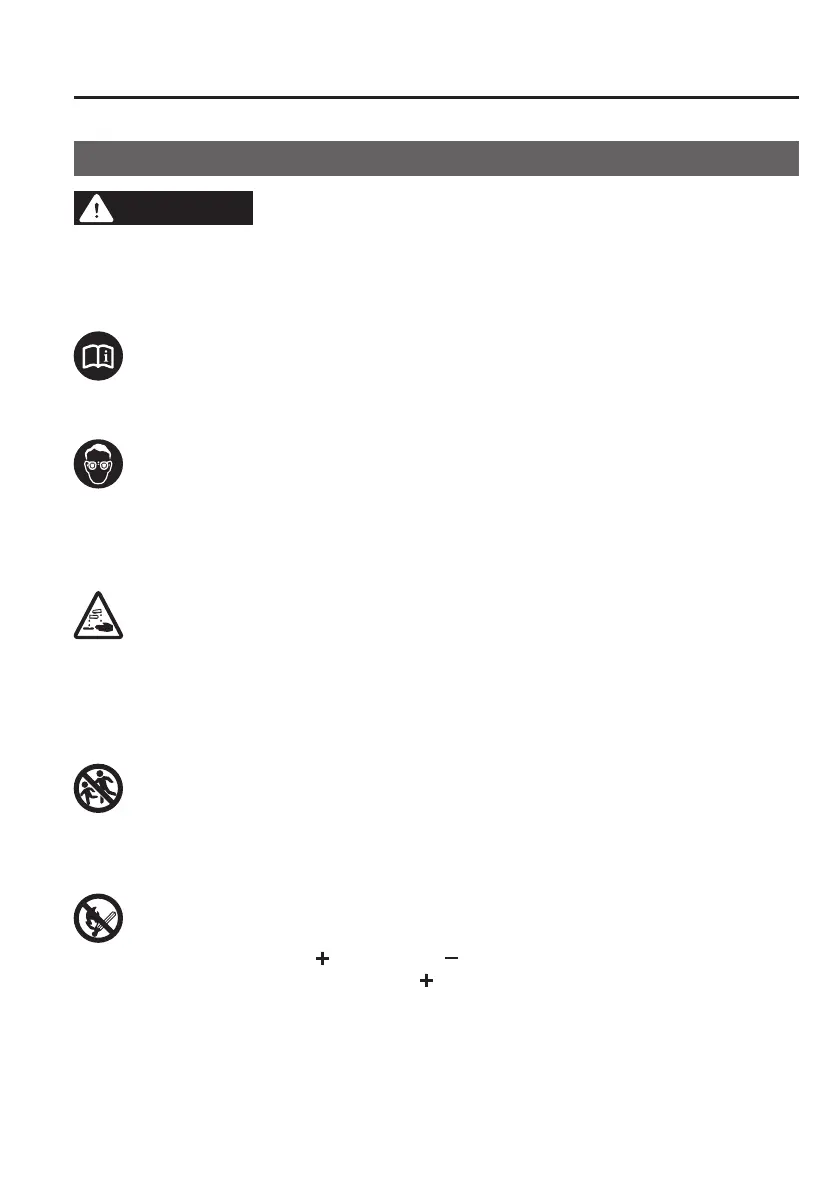 Keep ames and sparks away from open battery cells and do not allow metal