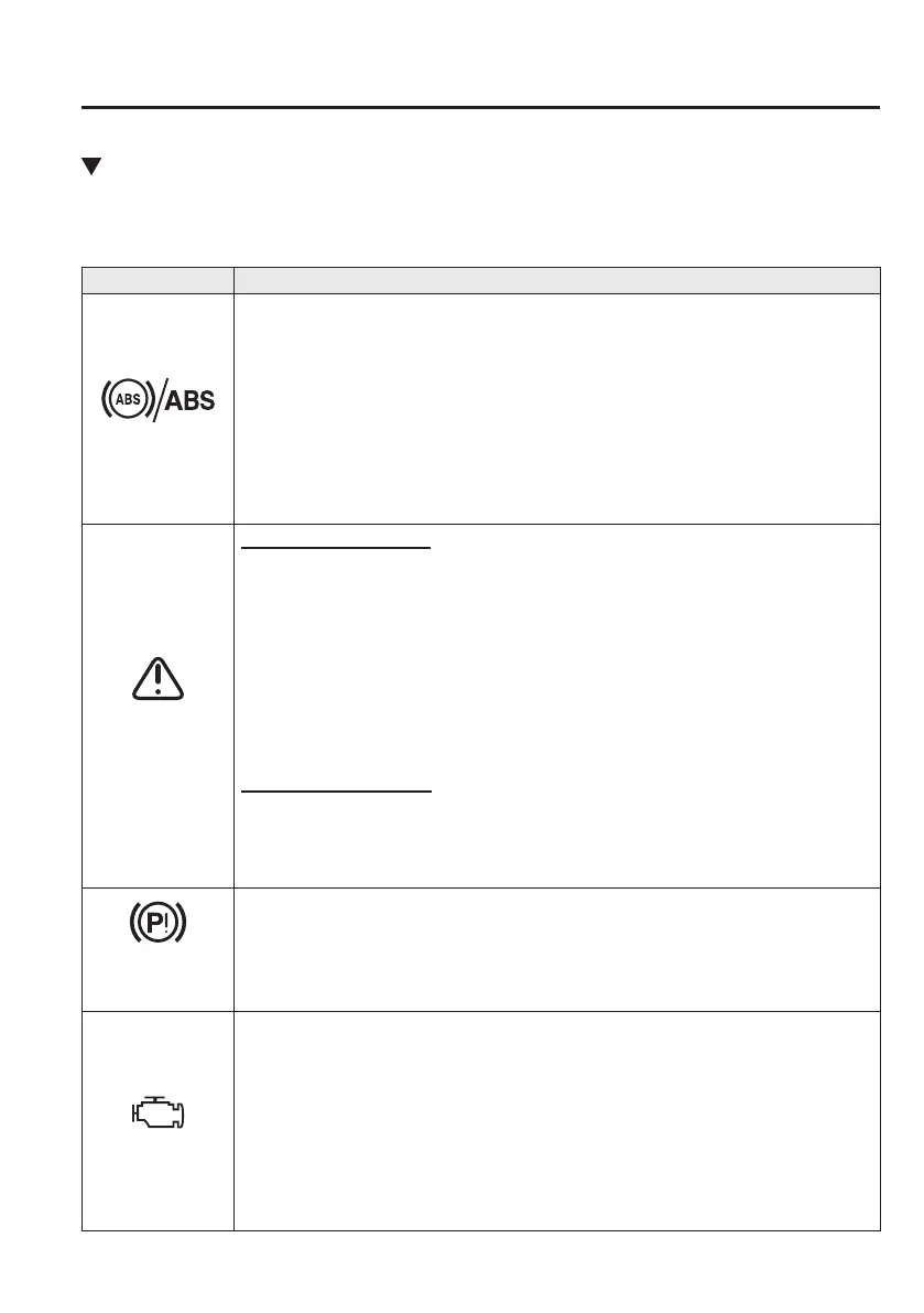 For details, refer to the explanations for the warning/indicator lights, in the warning/