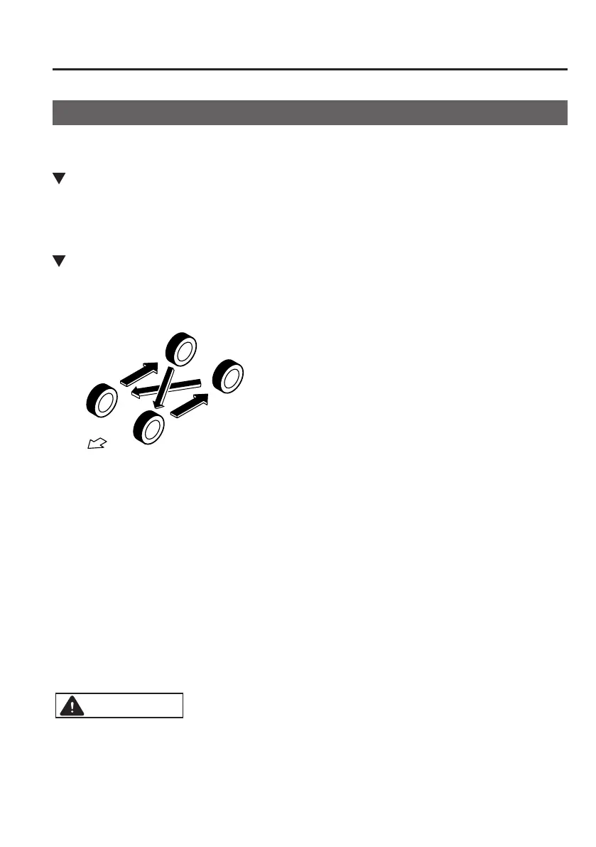 To equalize tread wear, rotate the tires every 12,000 km (7,500 miles) at the latest or sooner