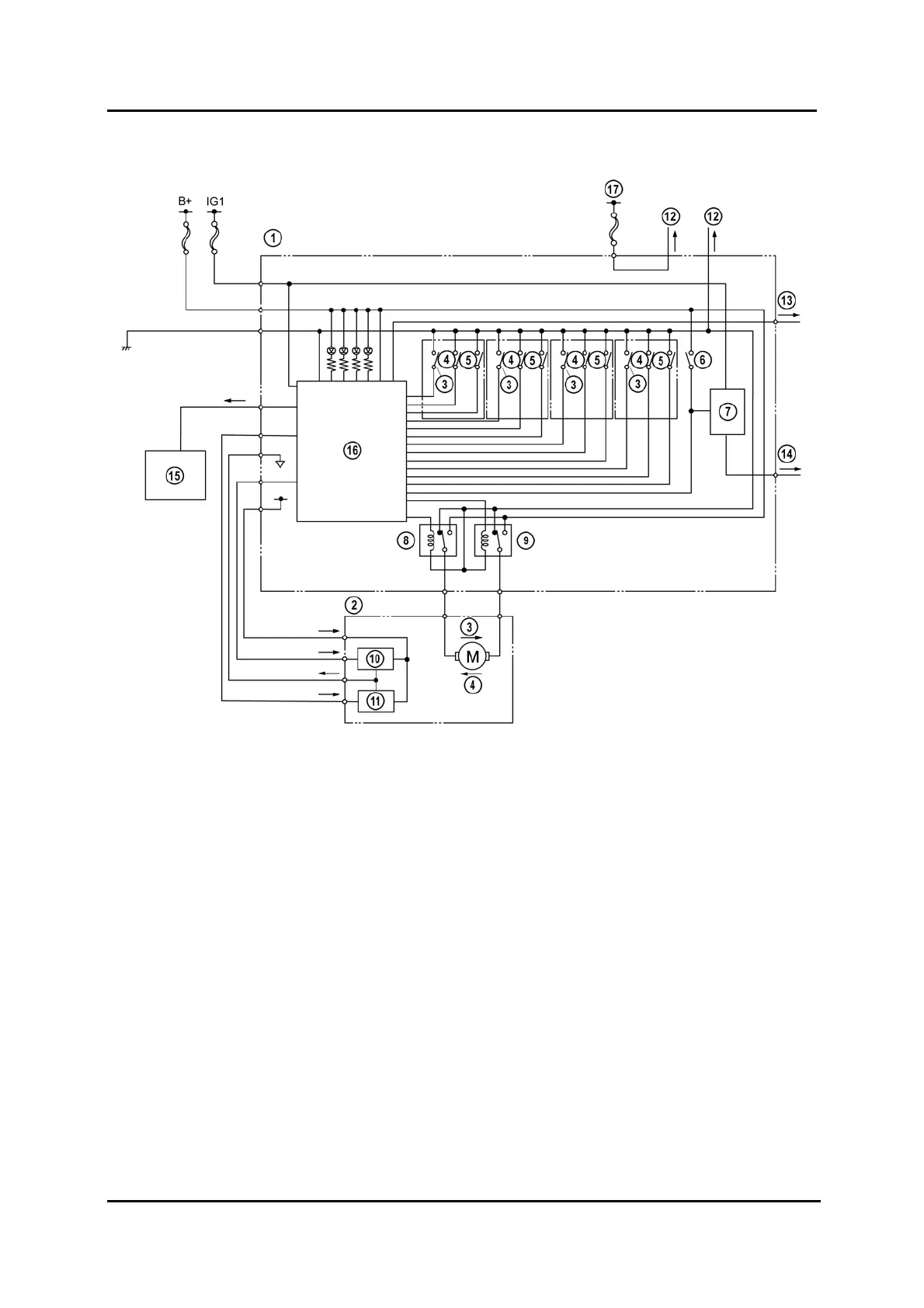 2 Power window motor (driver’s side) 11 Hall effect switch 2
