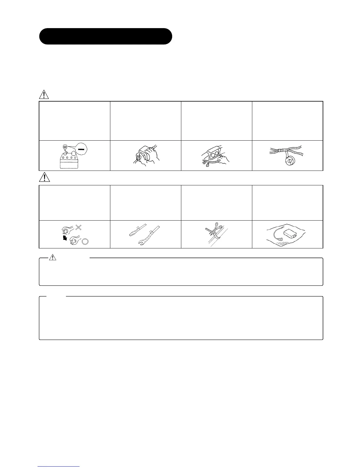 • When removing/installing the parts, park the vehicle on level ground and apply the side brake securely. Be