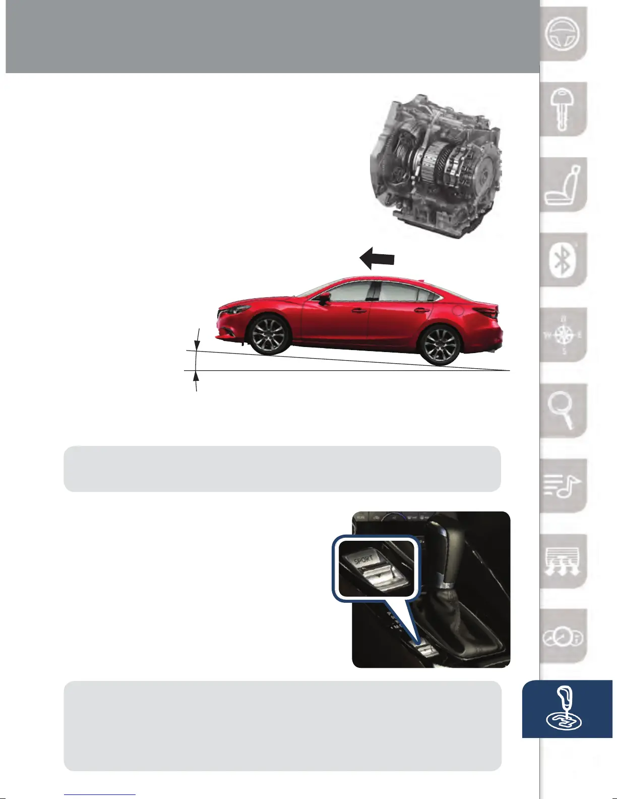 • Fuel consumption increases slightly when using SPORT mode.
