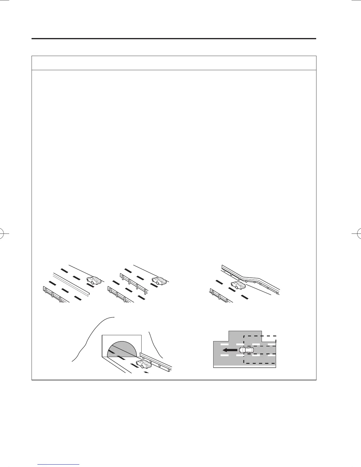 (guardrails, tunnels, sidewalls, and parked vehicles) on the road or the roadside.
