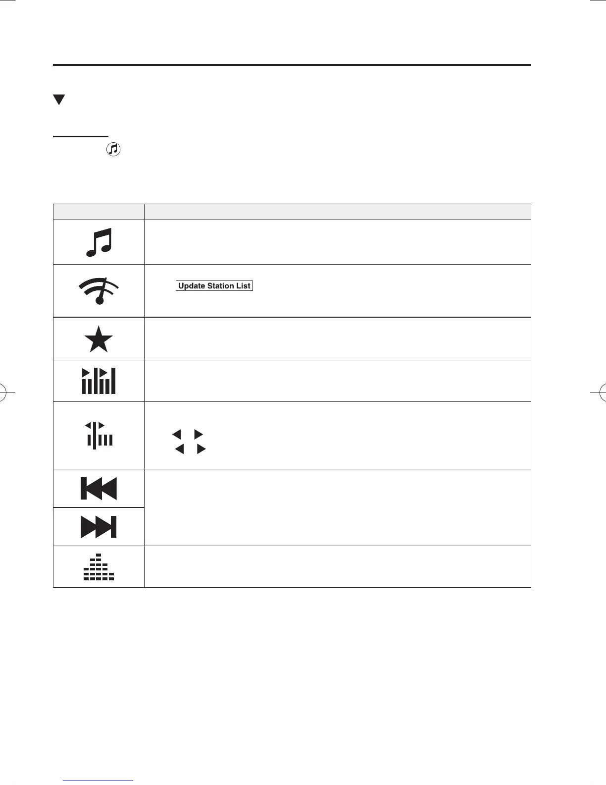 the desired radio, the following icons are indicated in the lower part of the centre display.