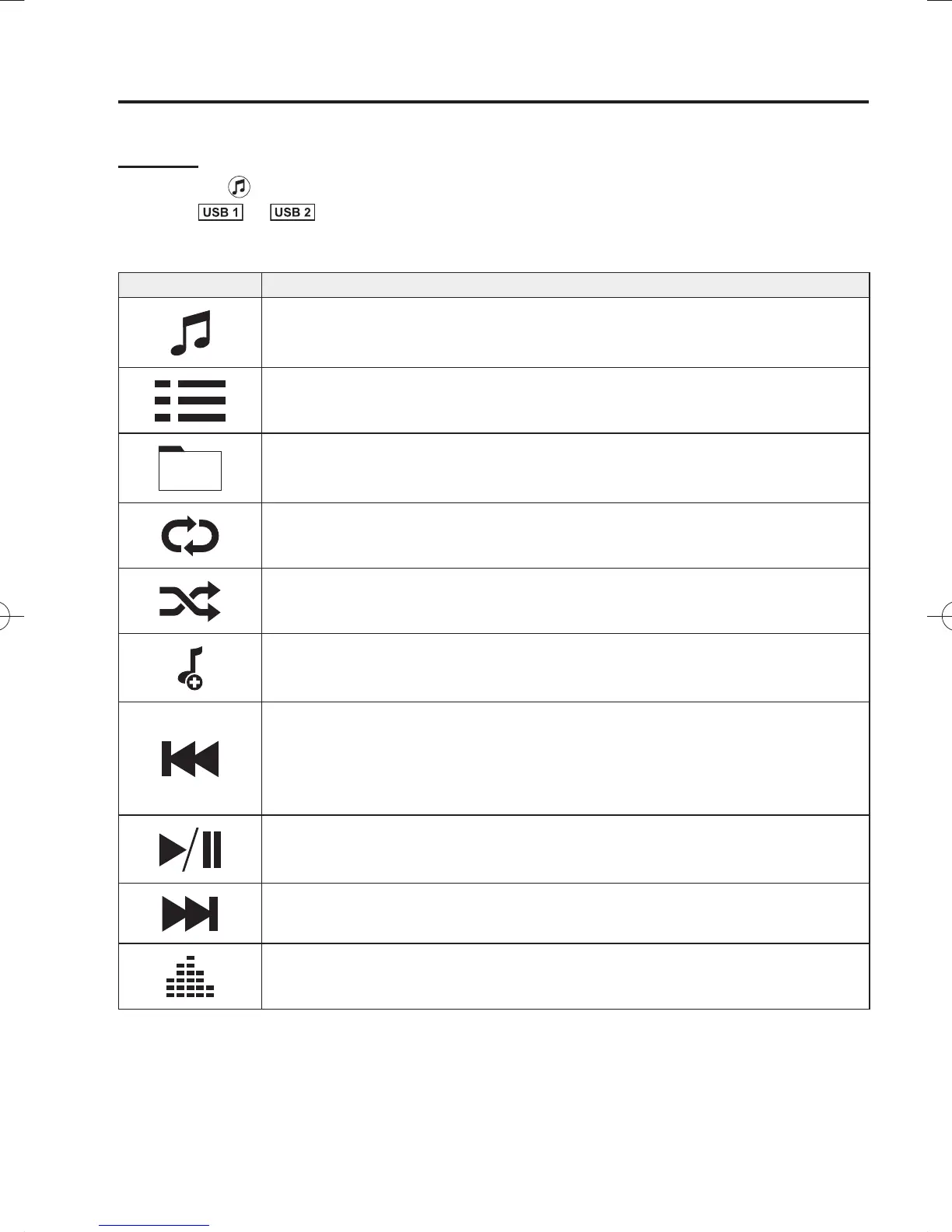 or to switch the USB mode. The following icons are displayed in the