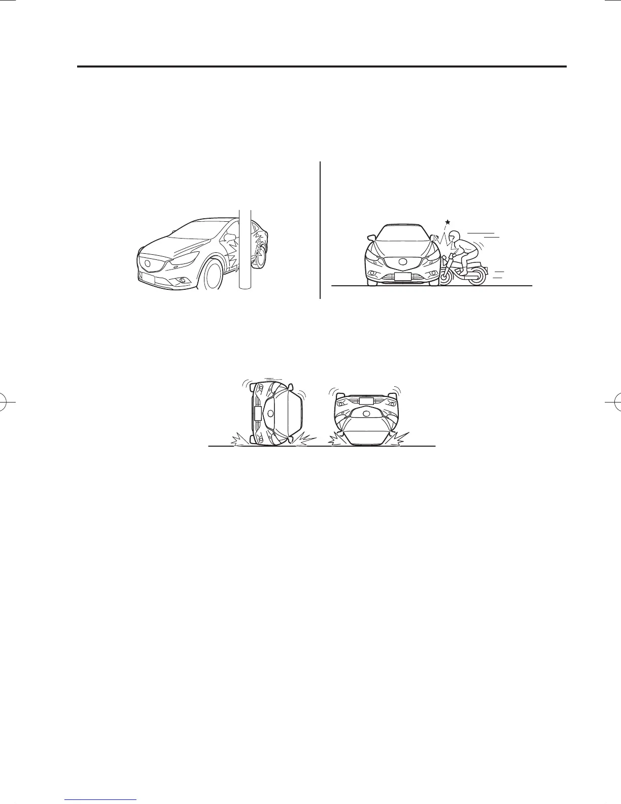 The following illustrations are examples of side collisions that may not be detected as severe