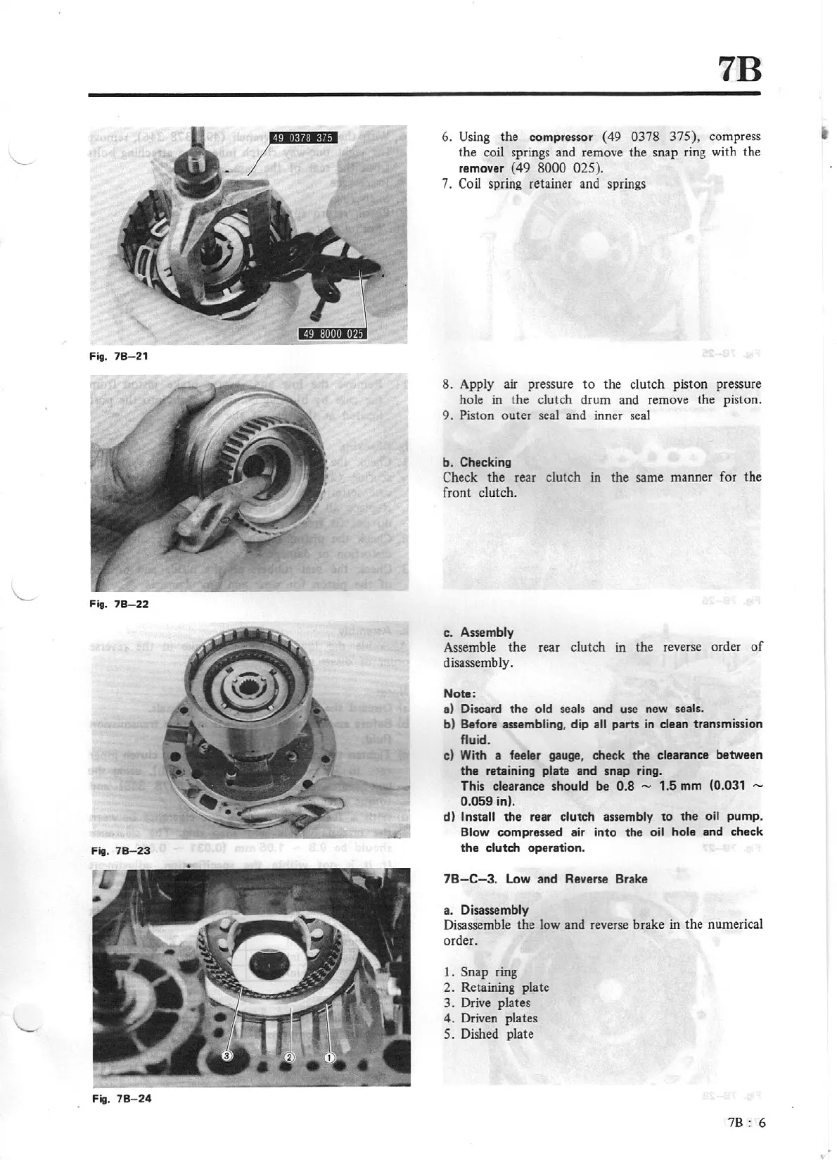 hole in the clutch drum and remove the piston.