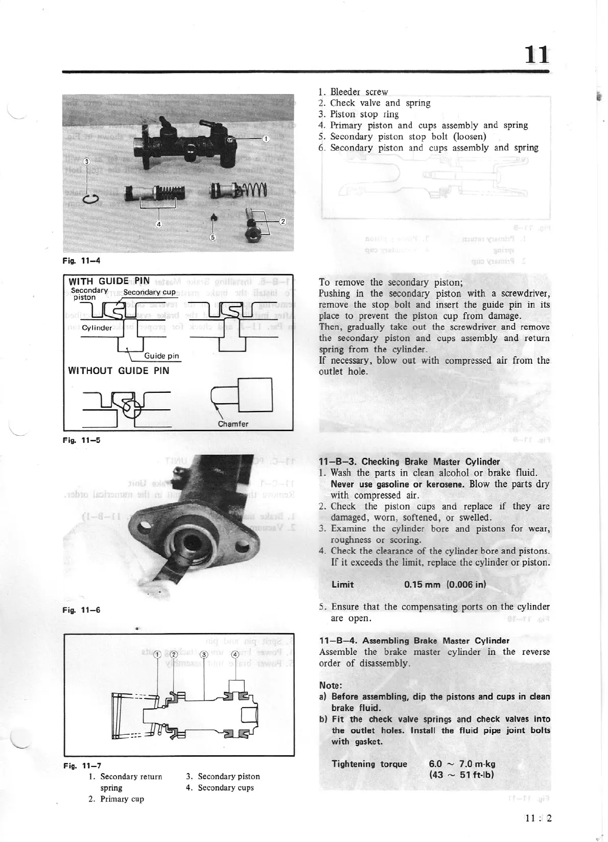 6. Secondary piston and cups assembly and spring