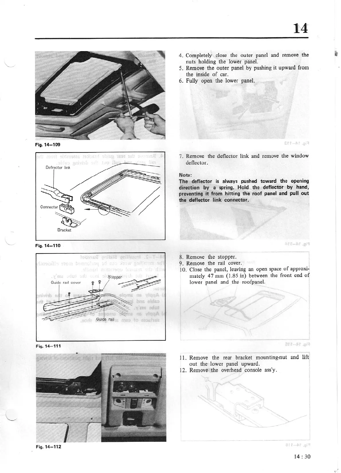 7. Remove the deflector link and remove the window