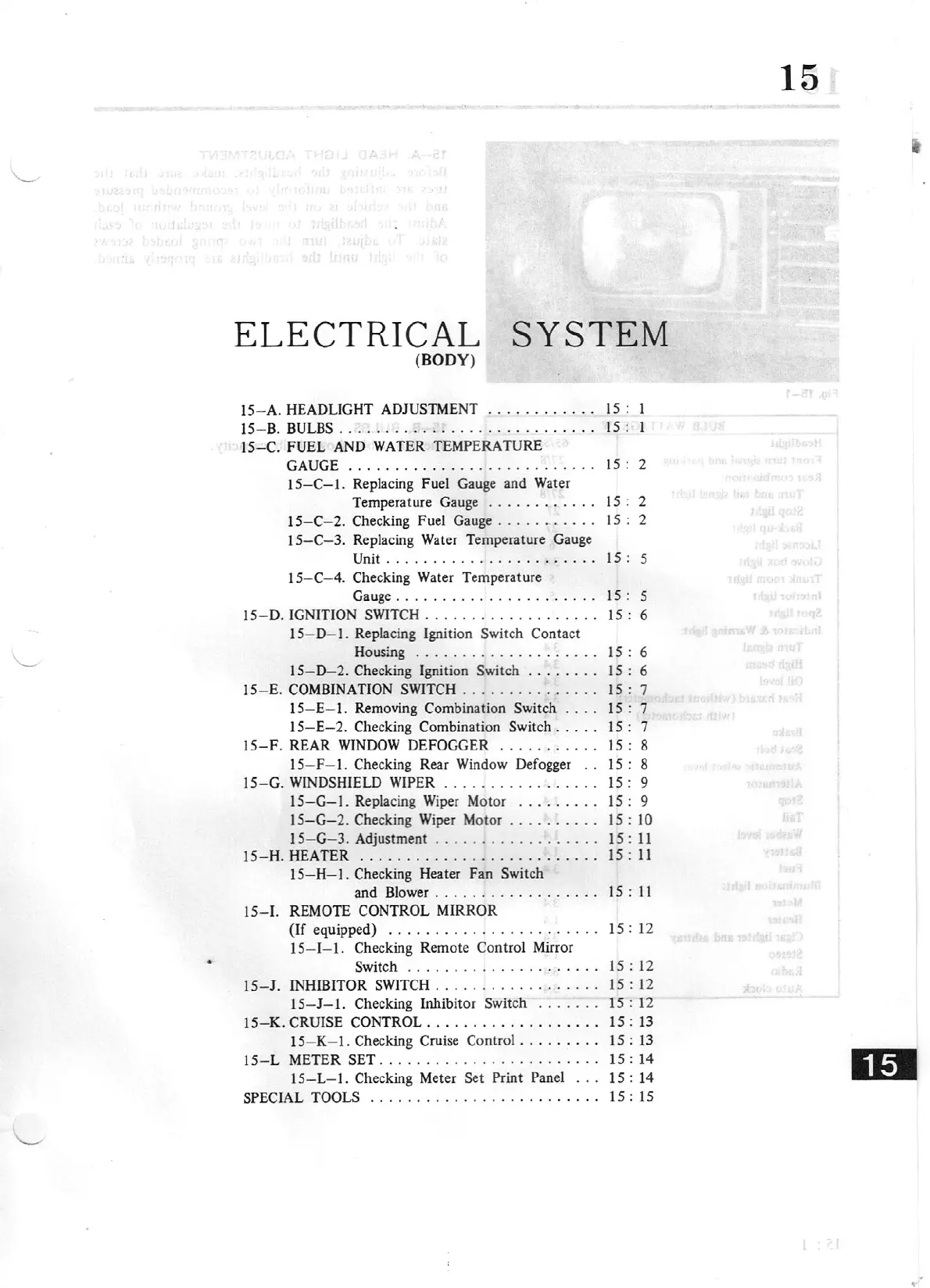 A. HEADLIGHT ADJUSTMENT . . . . . . . . . . . .