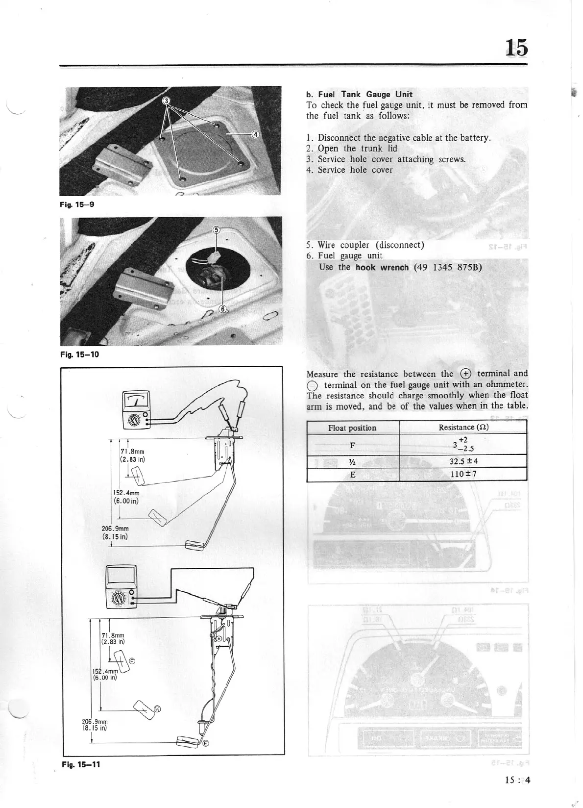 fuel gauge unit with an ohmmeter.