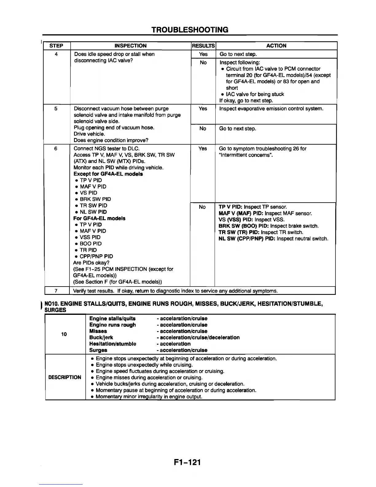 | N010. ENGINE STALLS/QUITS, ENGINE RUNS ROUGH, MISSES, BUCK/JERK, HESITATION/STUMBLE,