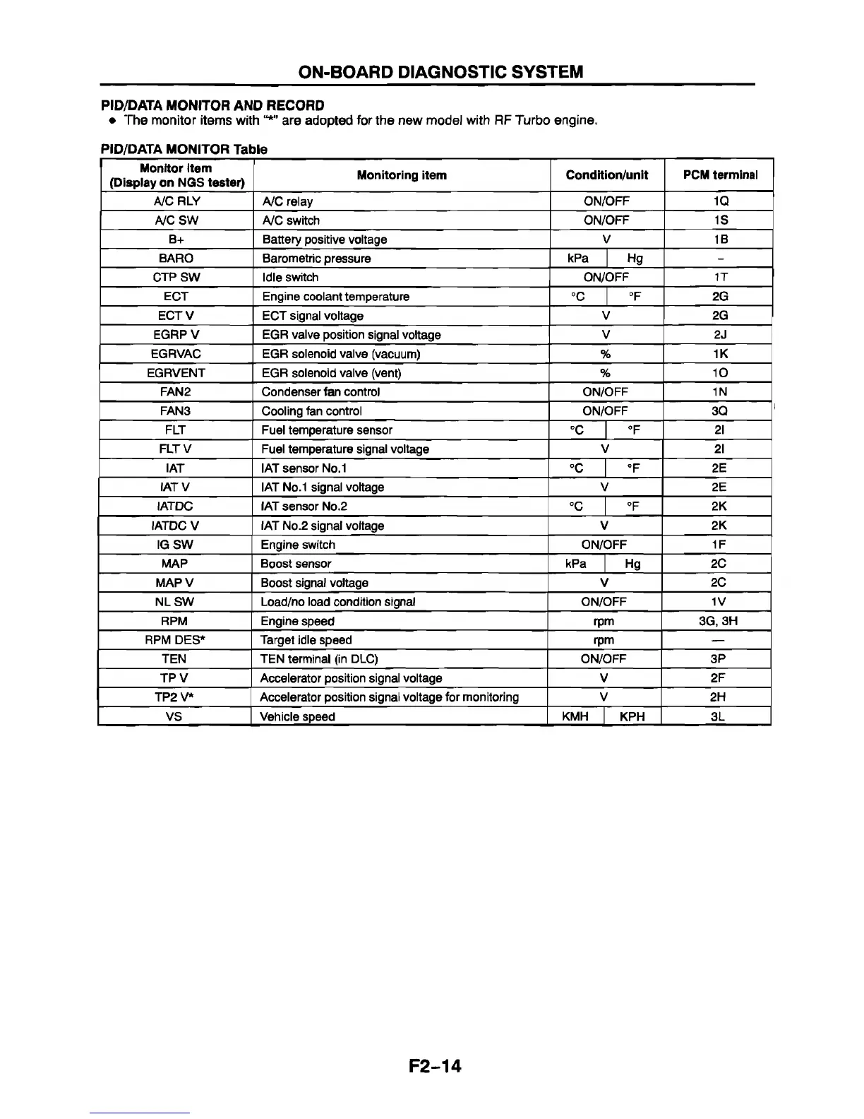 • The monitor items with are adopted for the new model with RF Turbo engine.