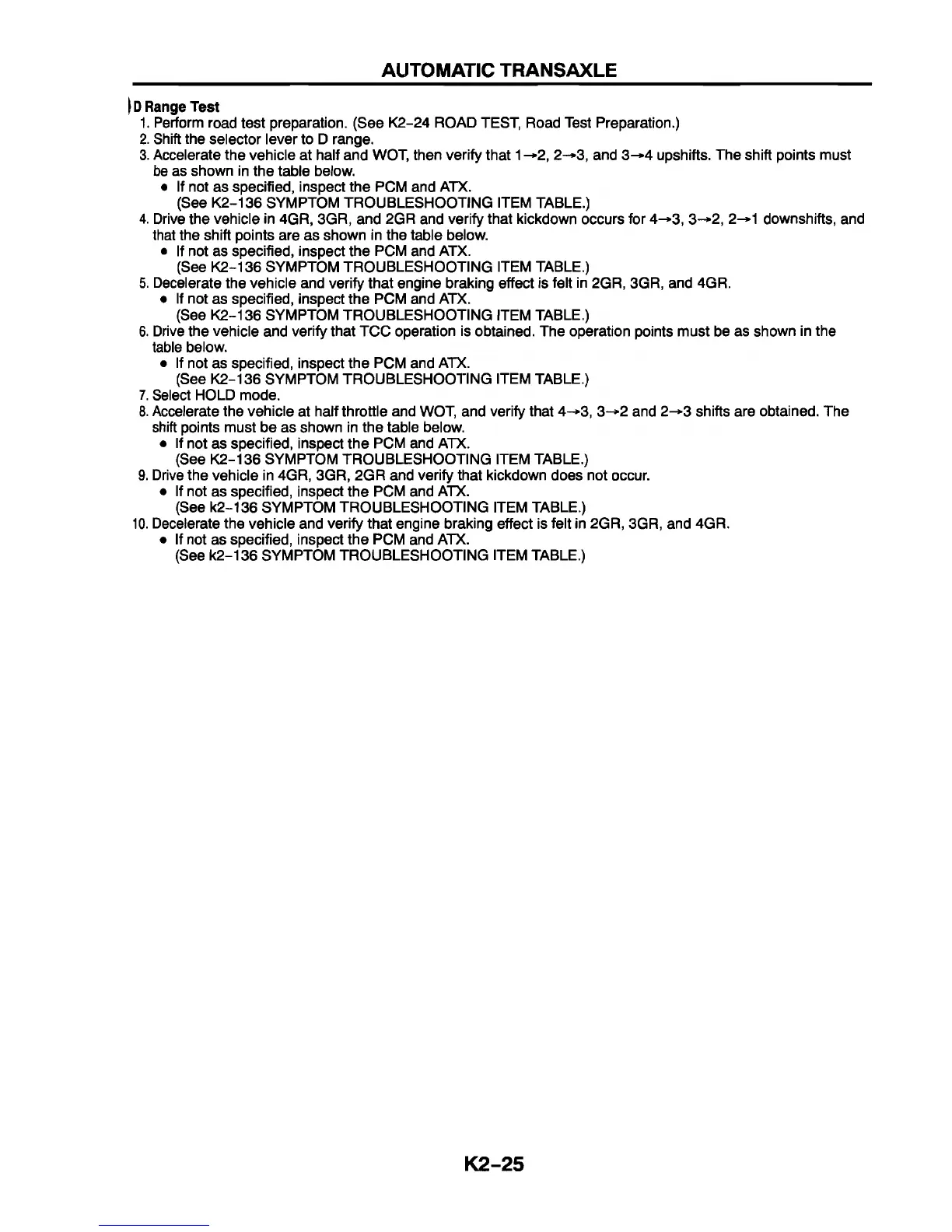 (See k2-136 SYMPTOM TROUBLESHOOTING ITEM TABLE.)