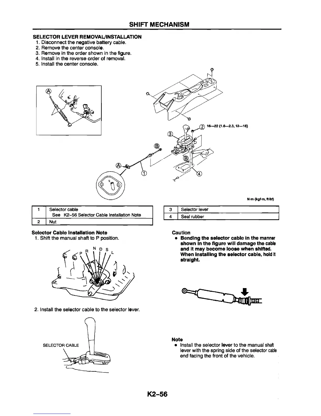SELECTOR LEVER REMOVAL/INSTALLATION