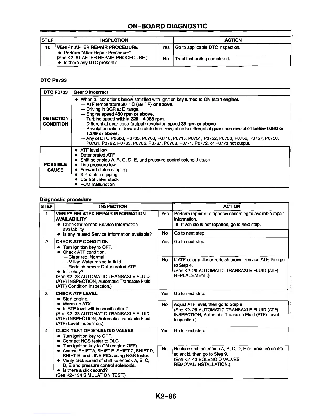 (See K2-28 AUTOMATIC TRANSAXLE FLUID (ATF)