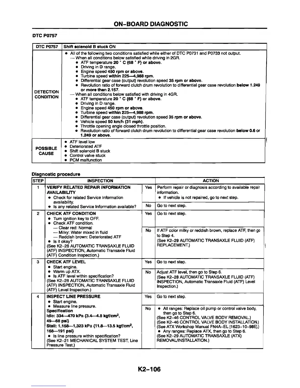 (See K2-28 AUTOMATIC TRANSAXLE FLUID (ATF)