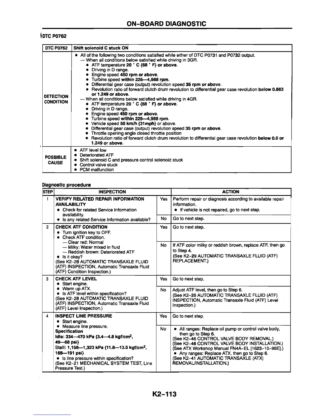 (See K2-28 AUTOMATIC TRANSAXLE FLUID (ATF)