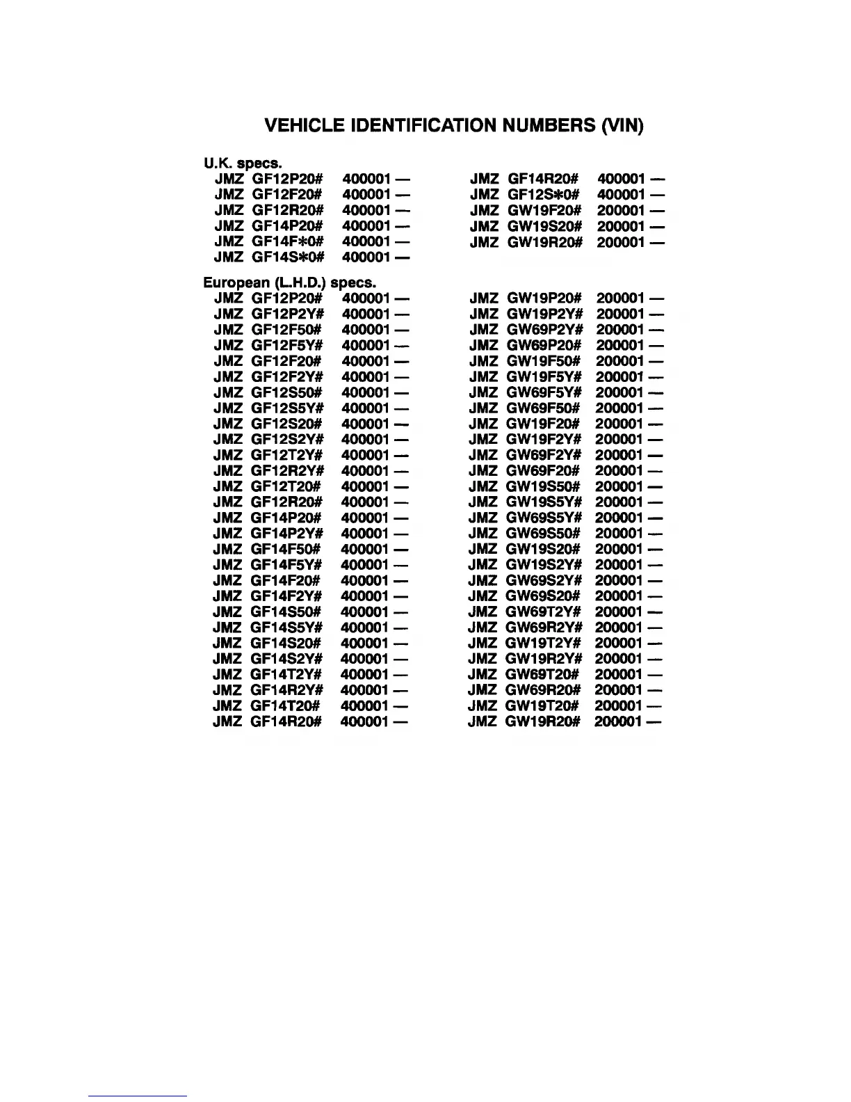 Mazda 626 - Vehicle Identification Numbers (VIN)