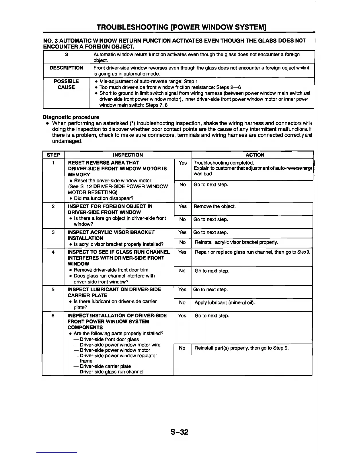NO. 3 AUTOMATIC WINDOW RETURN FUNCTION ACTIVATES EVEN THOUGH THE GLASS DOES NOT I