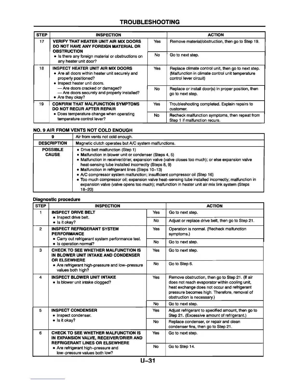 • Malfunction in blower unit or condenser (Steps 4, 5)