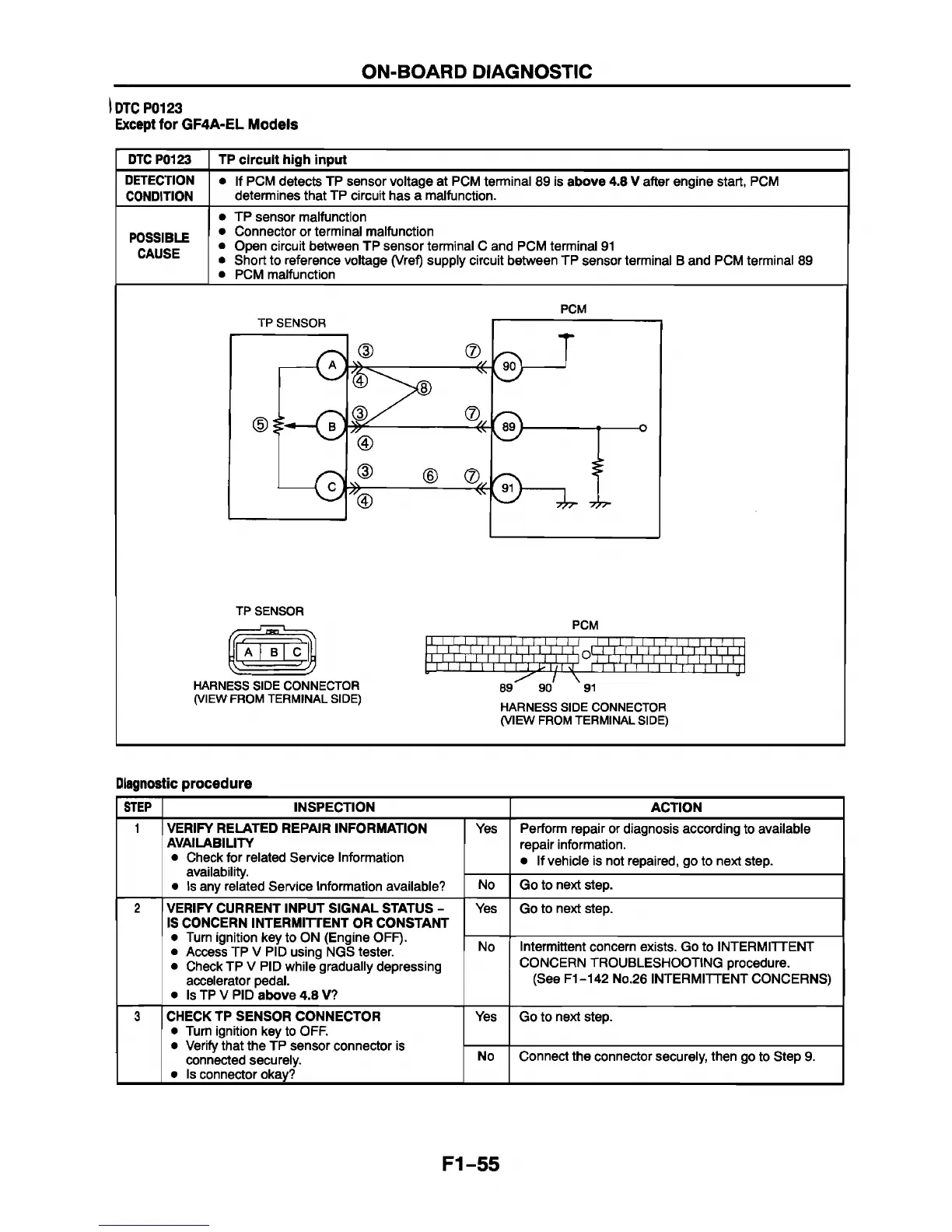 Open circuit between TP sensor terminal C and PCM terminal 91