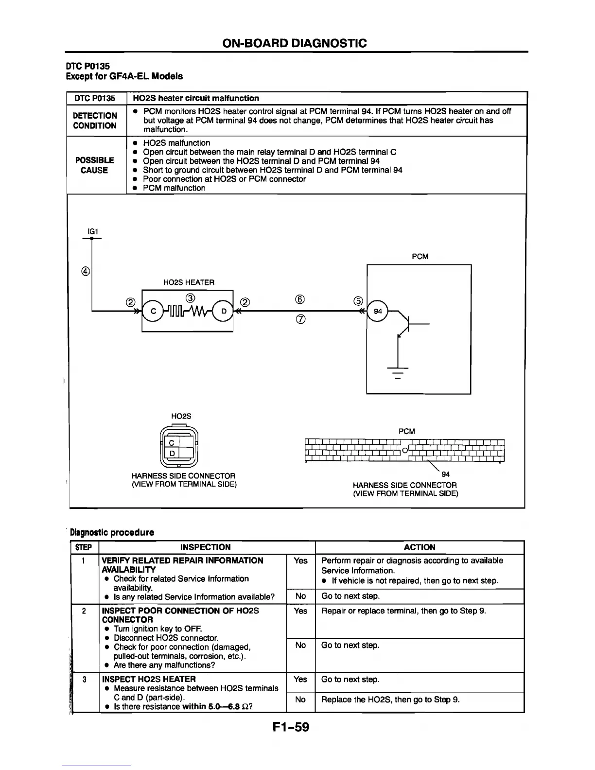 • Open circuit between the H02S terminal D and PCM terminal 94