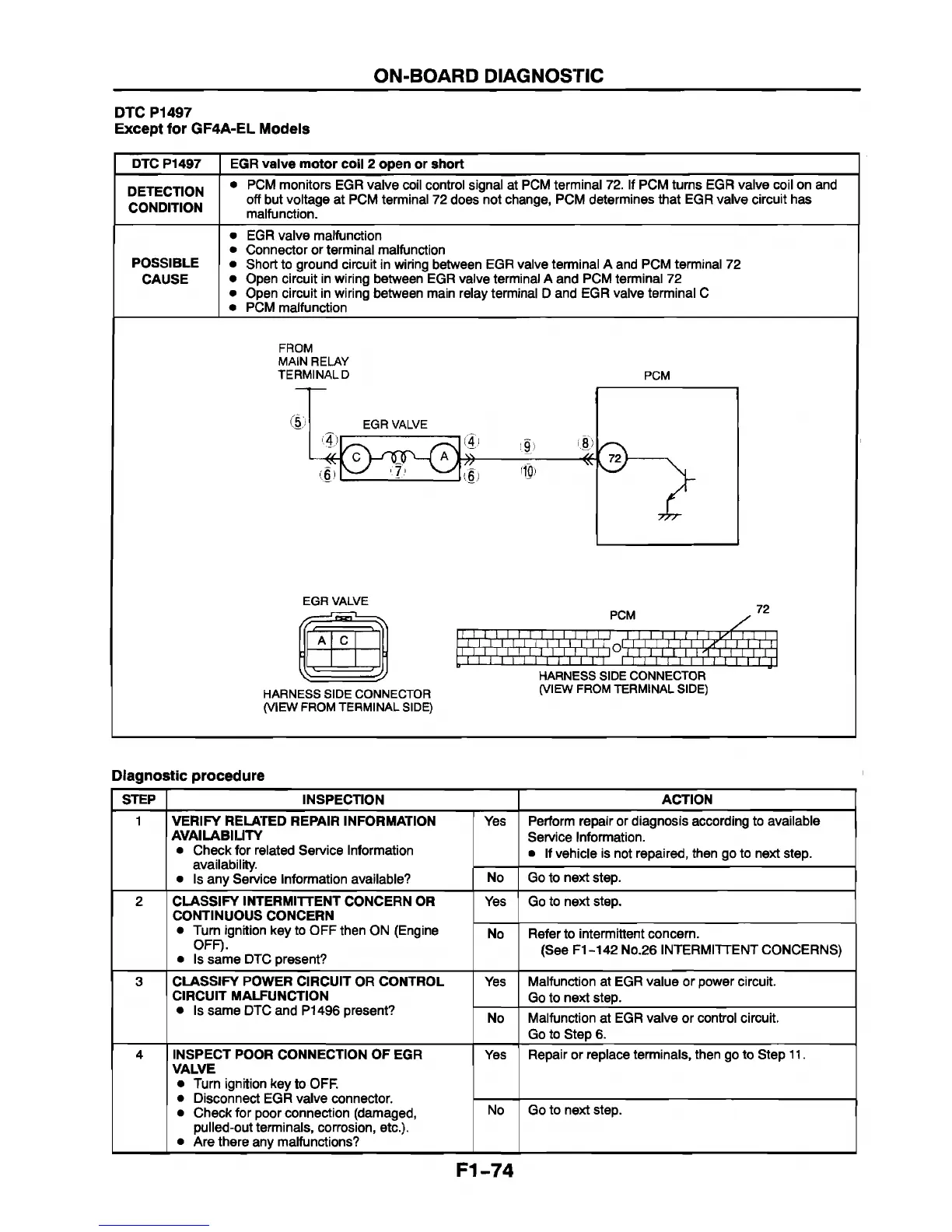 off but voltage at PCM terminal 72 does not change, PCM determines that EGR valve circuit has