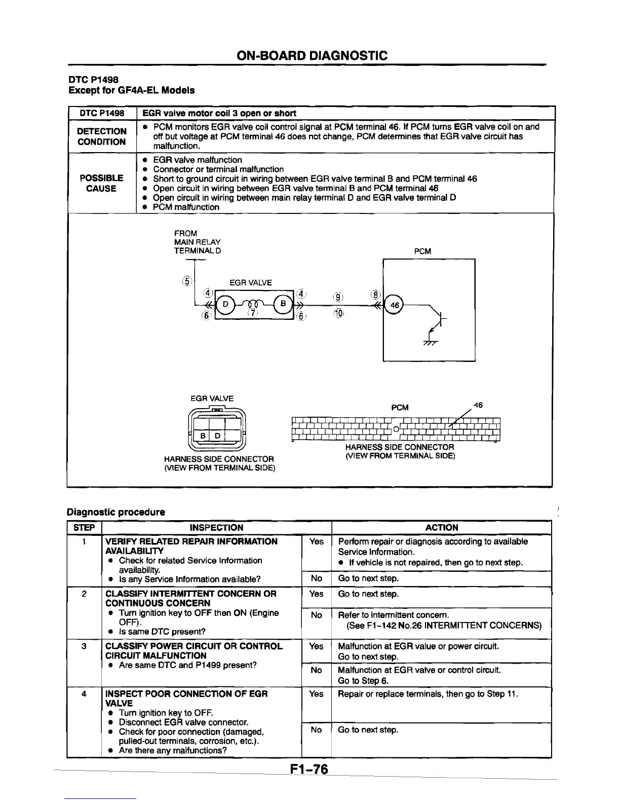 off but voltage at PCM terminal 46 does not change, PCM determines that EGR valve circuit has