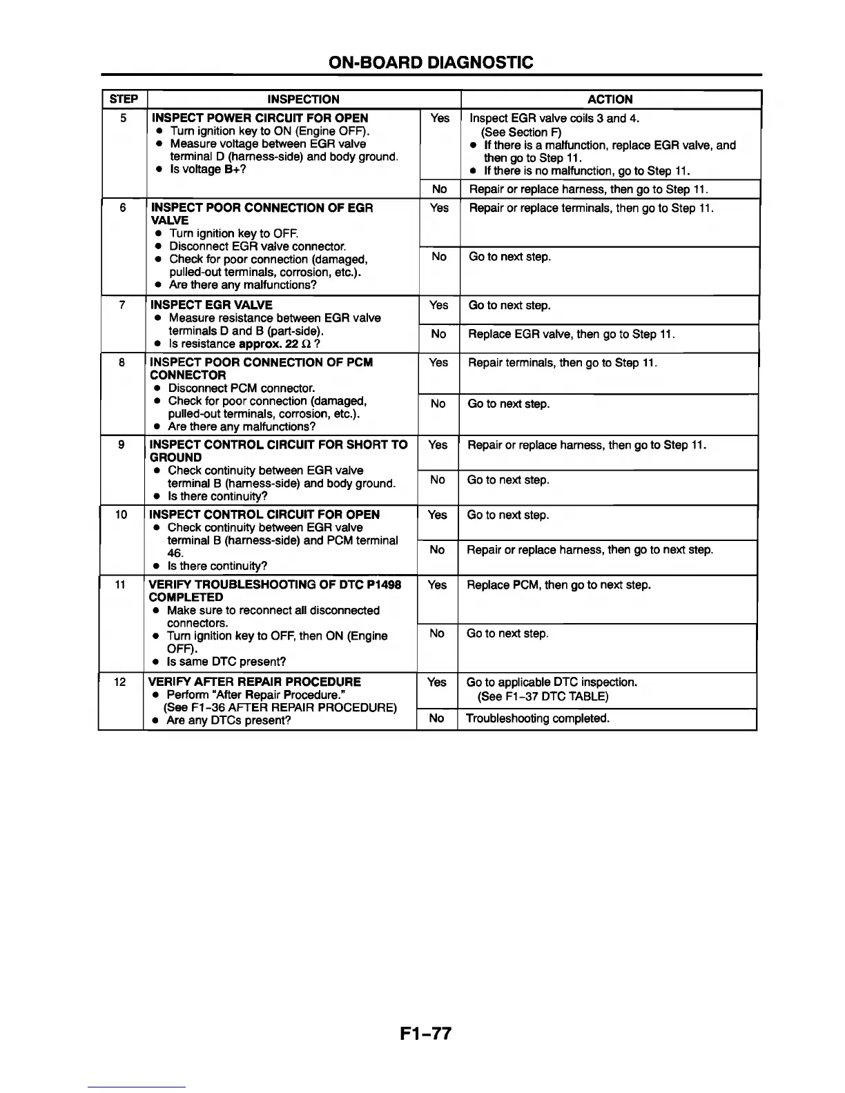 VERIFY TROUBLESHOOTING OF DTC P1498