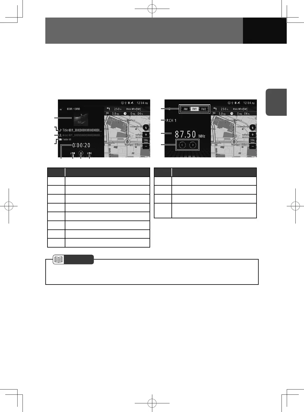 <Disc/USB/iPod/Bluetooth audio menu> <Radio (AM, FM) menu>
