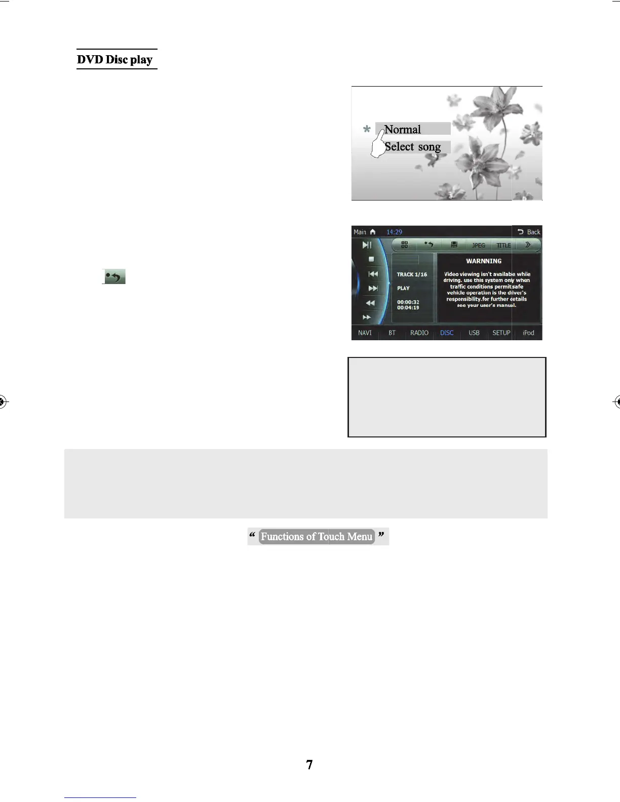 the Functions of Touch Menu - please refer to the 4th section in the DVD function operations.