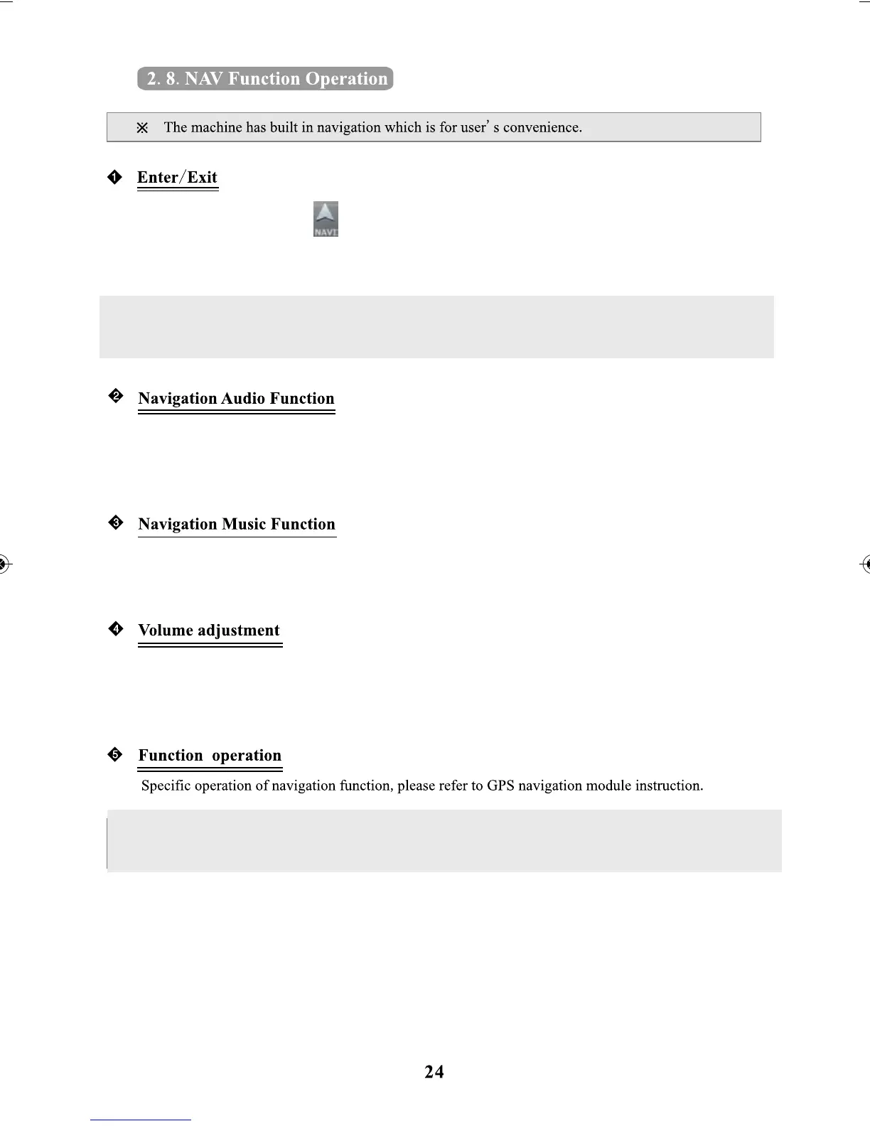 X In NAV state, you can only operate functions related to GPS on the screen, if you need to adjust