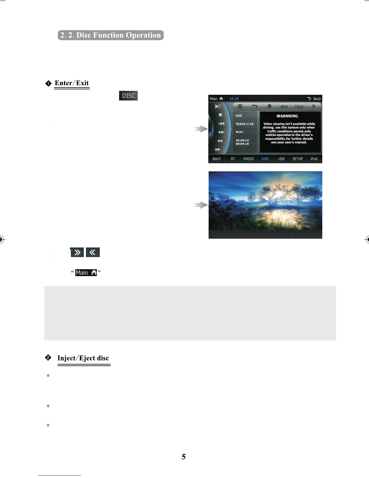 the disc playing function. When inserting a disc in Nav state, vehicle stays in Nav mode and is still