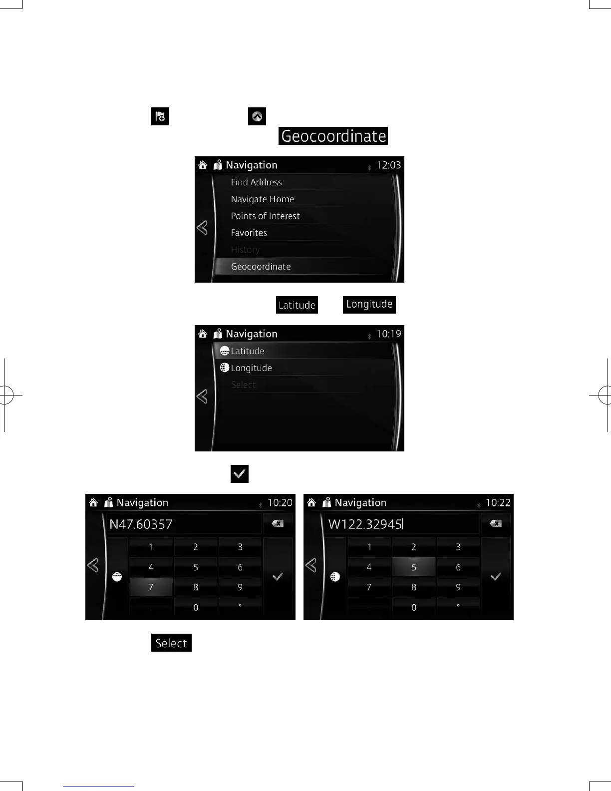You can also select a destination by entering its coordinate as follows: