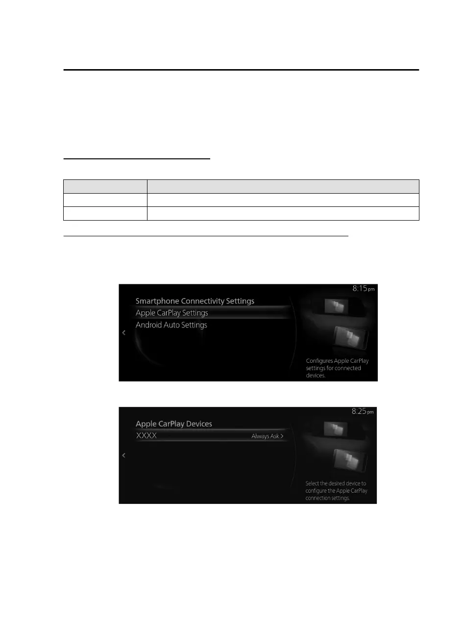 Apple CarPlay Settings Configures Apple CarPlay settings for connected devices.