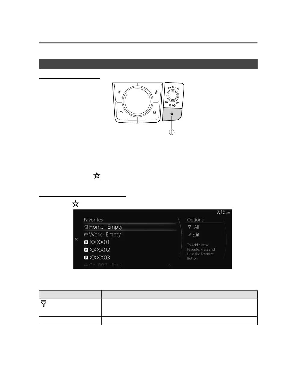 The Favorites button provides quick access to contents such as radio stations,