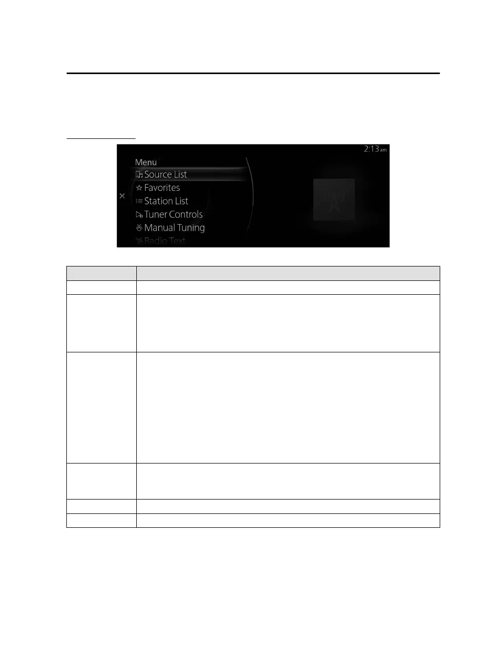 Source List Displays the Source List screen. The audio source can be switched.