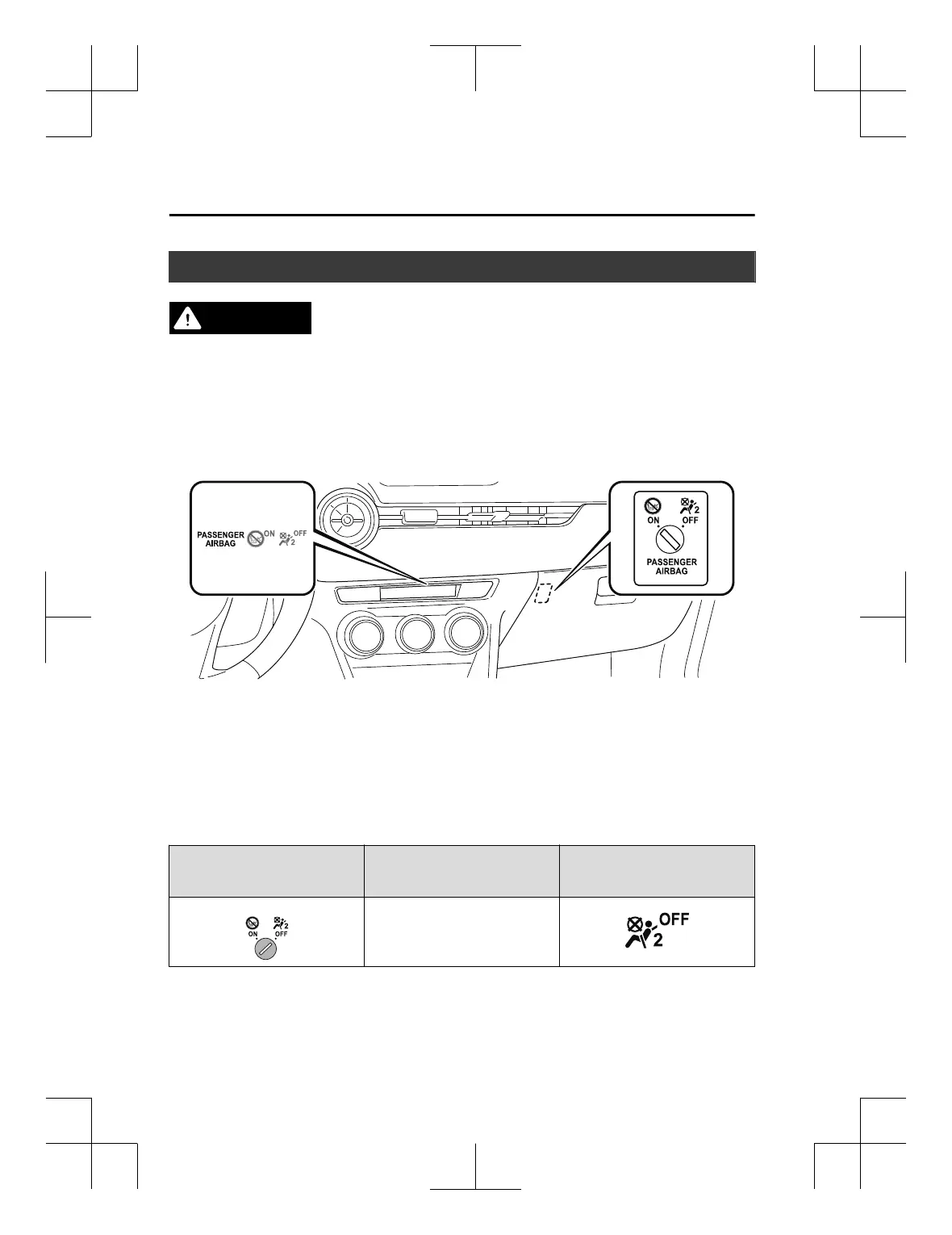 the front passenger seat, do not turn the air bag deactivation switch to the OFF position.