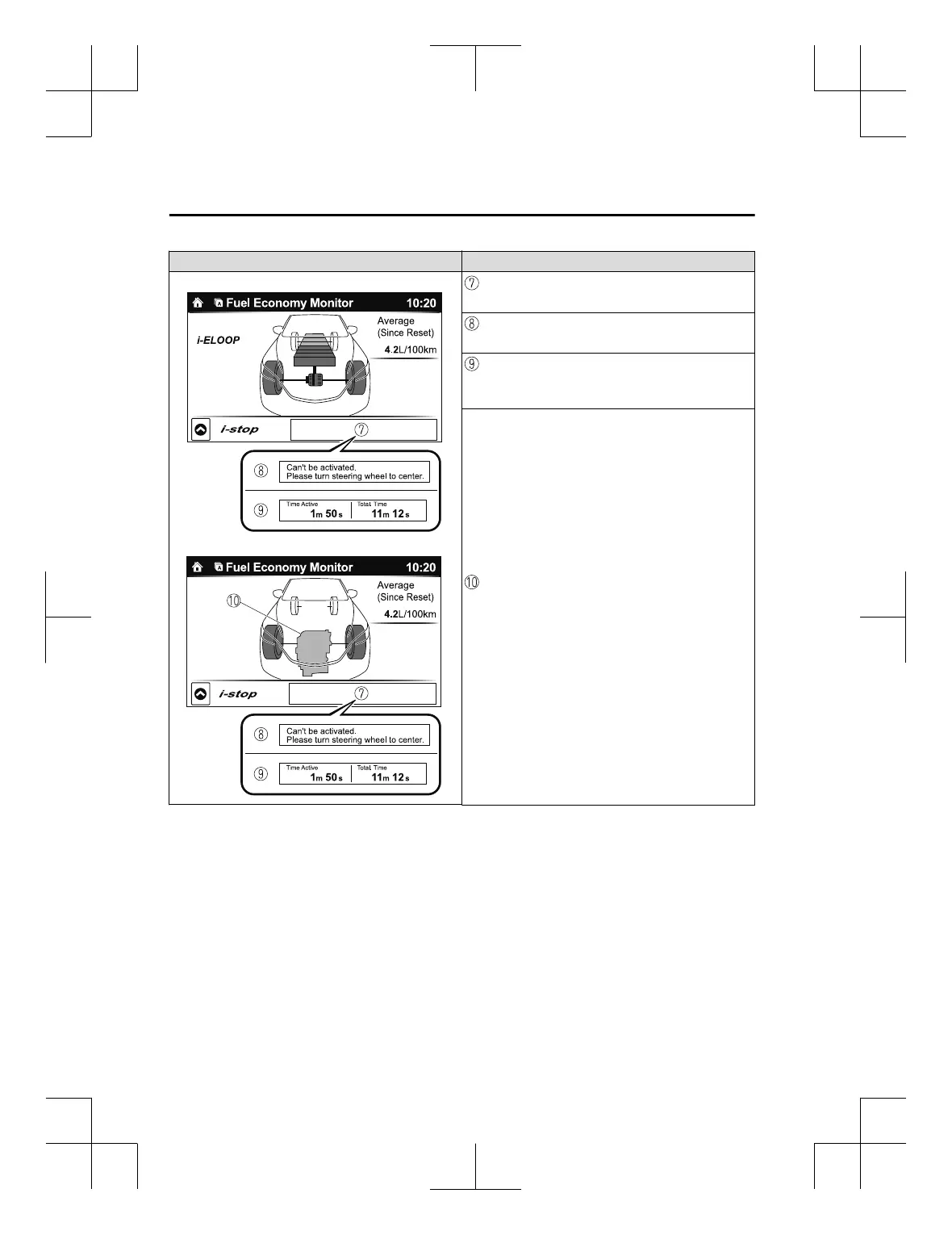 Displays the i-stop function status while the vehicle